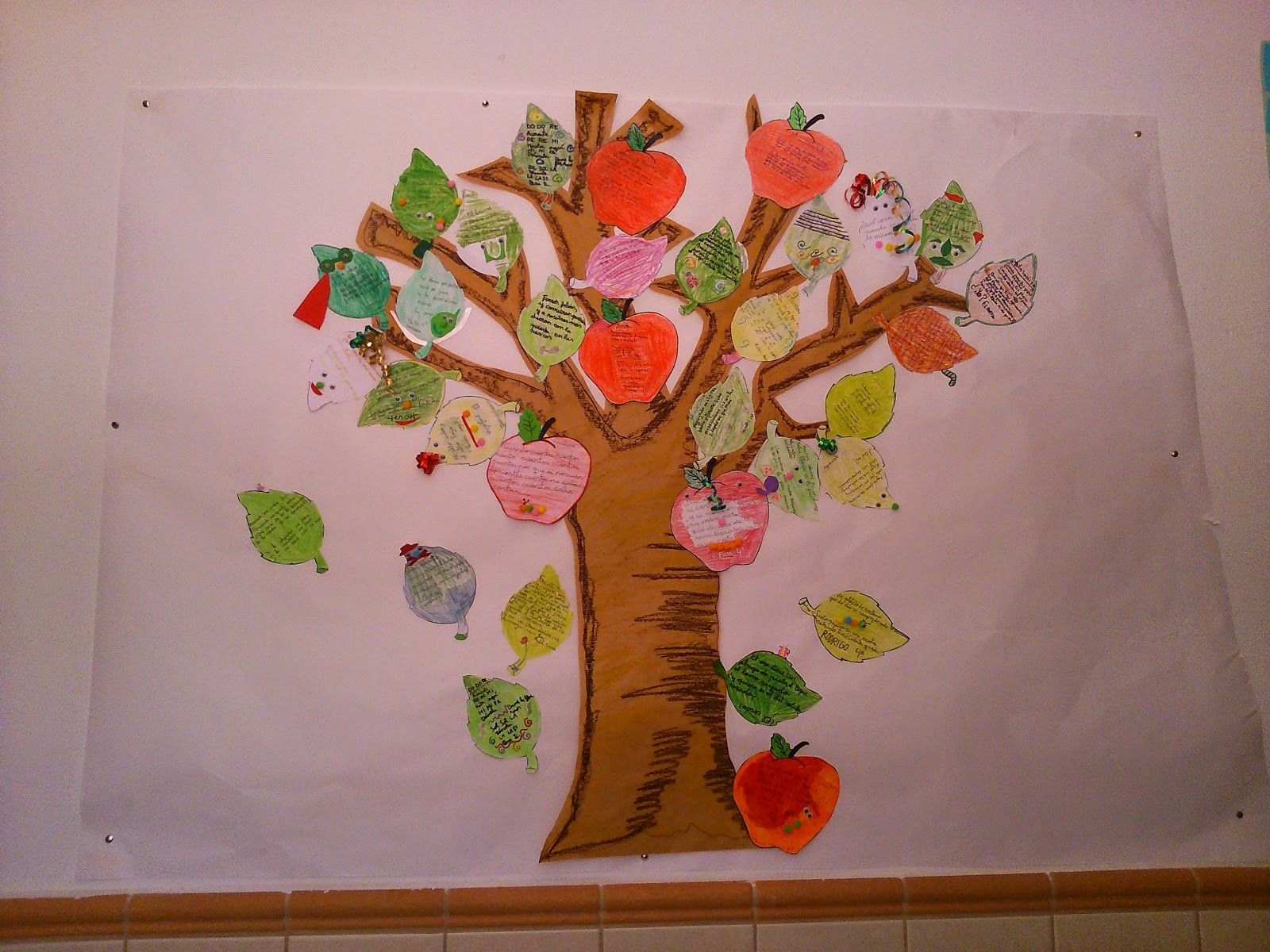 Se trata de un mural en el que de un tronco de cartulina marrón o papel contínuo van saliendo las hojas que los niños elaboran.