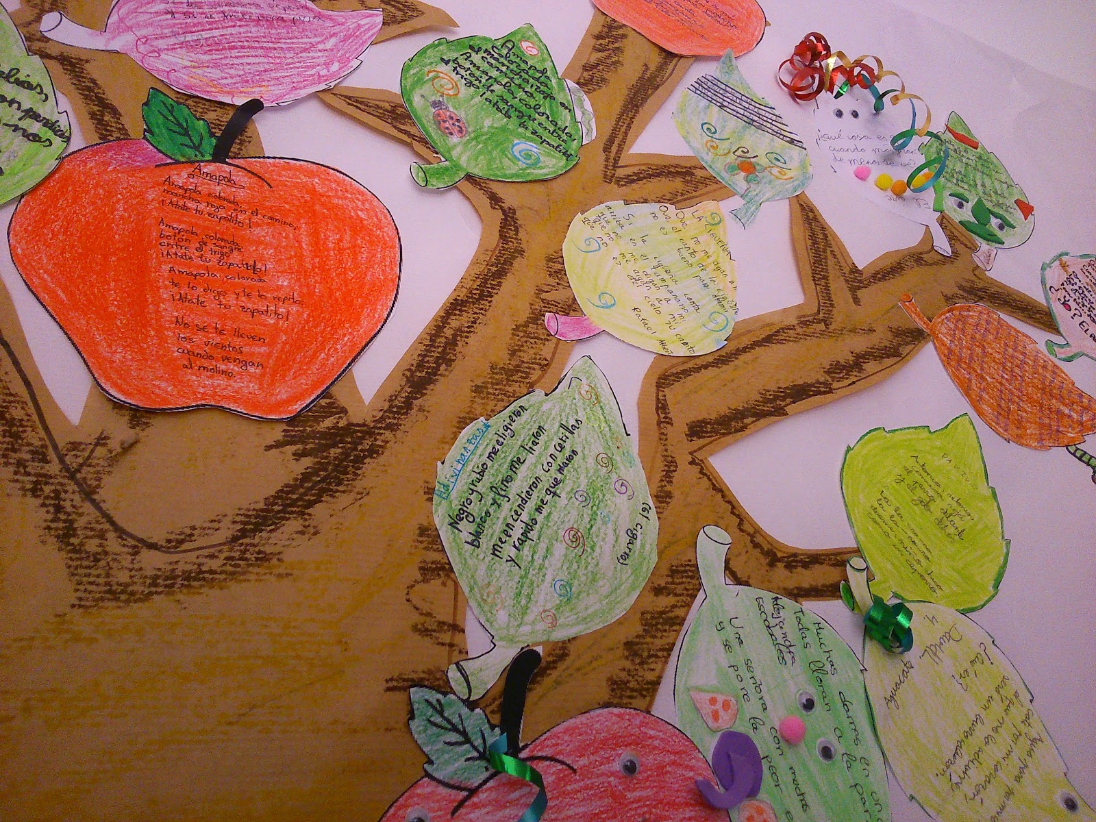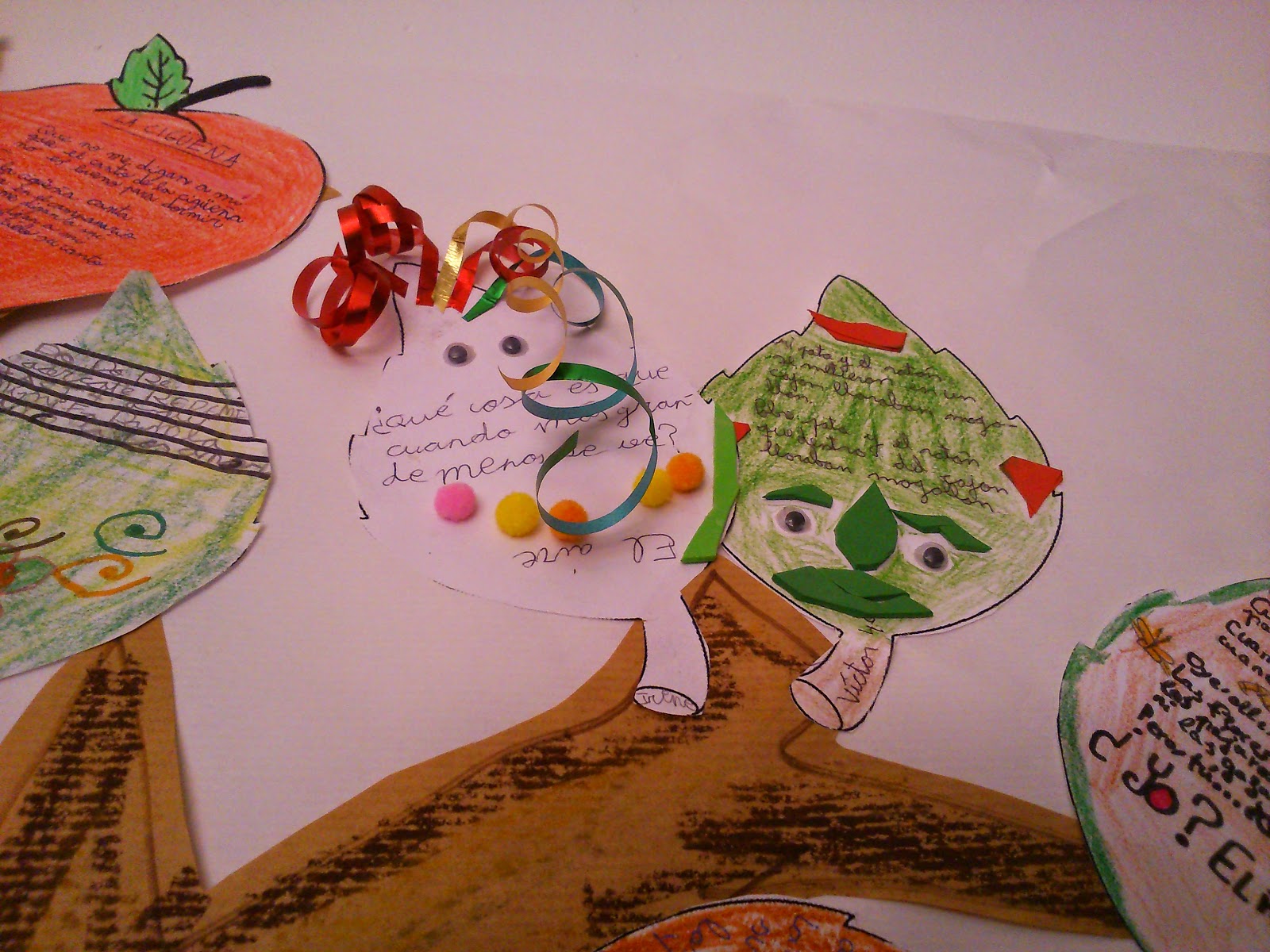 Cada alumno realiza una hoja, en la que escribe una poesía, un poema, o una adivinanza. En nuestro caso también optamos por dar como premio a los que mejor letra tenían una manzana.